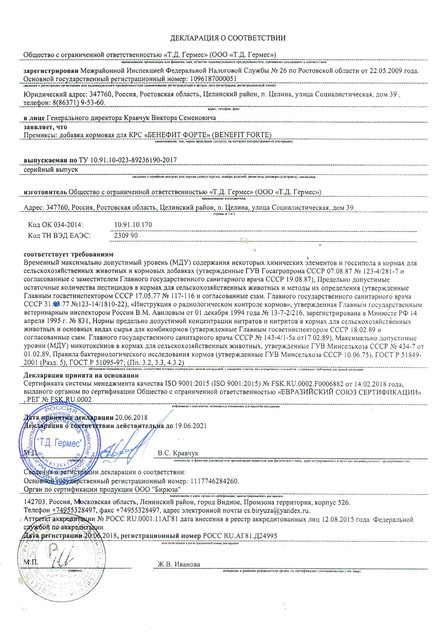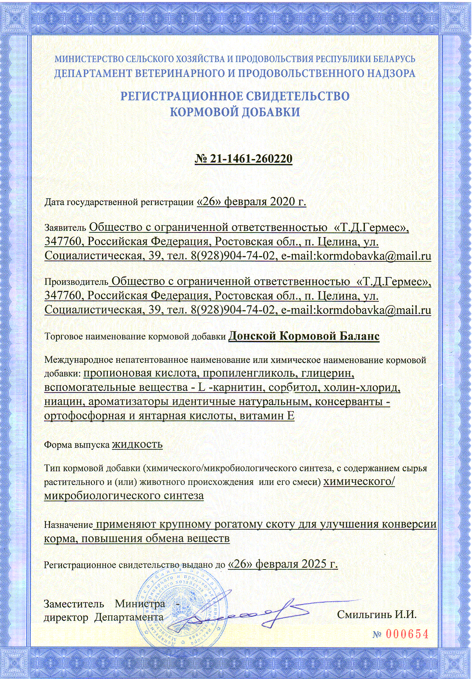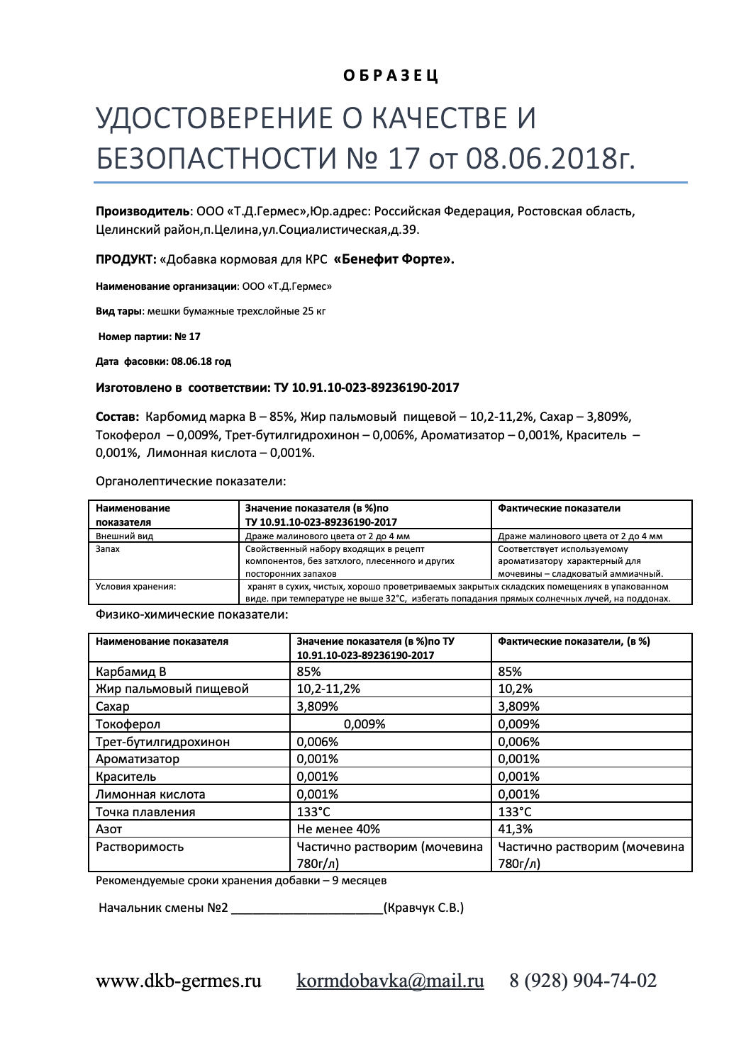 Применение препарата в составе рациона-кормления, позволяет организму коровы использовать депонированный жир по прямому назначению в нормах определенных физиологией. Таким образом, в организме коровы, сохраняется энергетический баланс, удовлетворяется потребность организма в витаминах и минералах, тем самым сохраняется здоровье коровы. Животное становится более устойчивой к стрессам, готово противостоять различным заболеваниям.